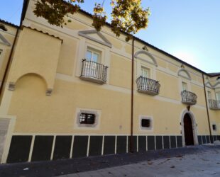 Alla sinistra dell’ingresso c’è un ambiente che, il recente restauro, ha pensato come ricevimento per gli ospiti che vorranno visitare il palazzo ma anche per la registrazione di coloro che, invece, vorrebbero soggiornare presso le casette del borgo di Collianello. Da qui inizia un percorso presso numerose sale affrescate, si tratta di piccoli ambienti tutti simili, nelle dimensioni, tra loro, ma diversi nelle decorazioni delle pareti: frutta, fiori e festoni, con mascheroni qua e là, in stile con la moda tipica del XVI secolo, soprattutto a decorazione delle finestre che aprono lo sguardo sullo splendido panorama.